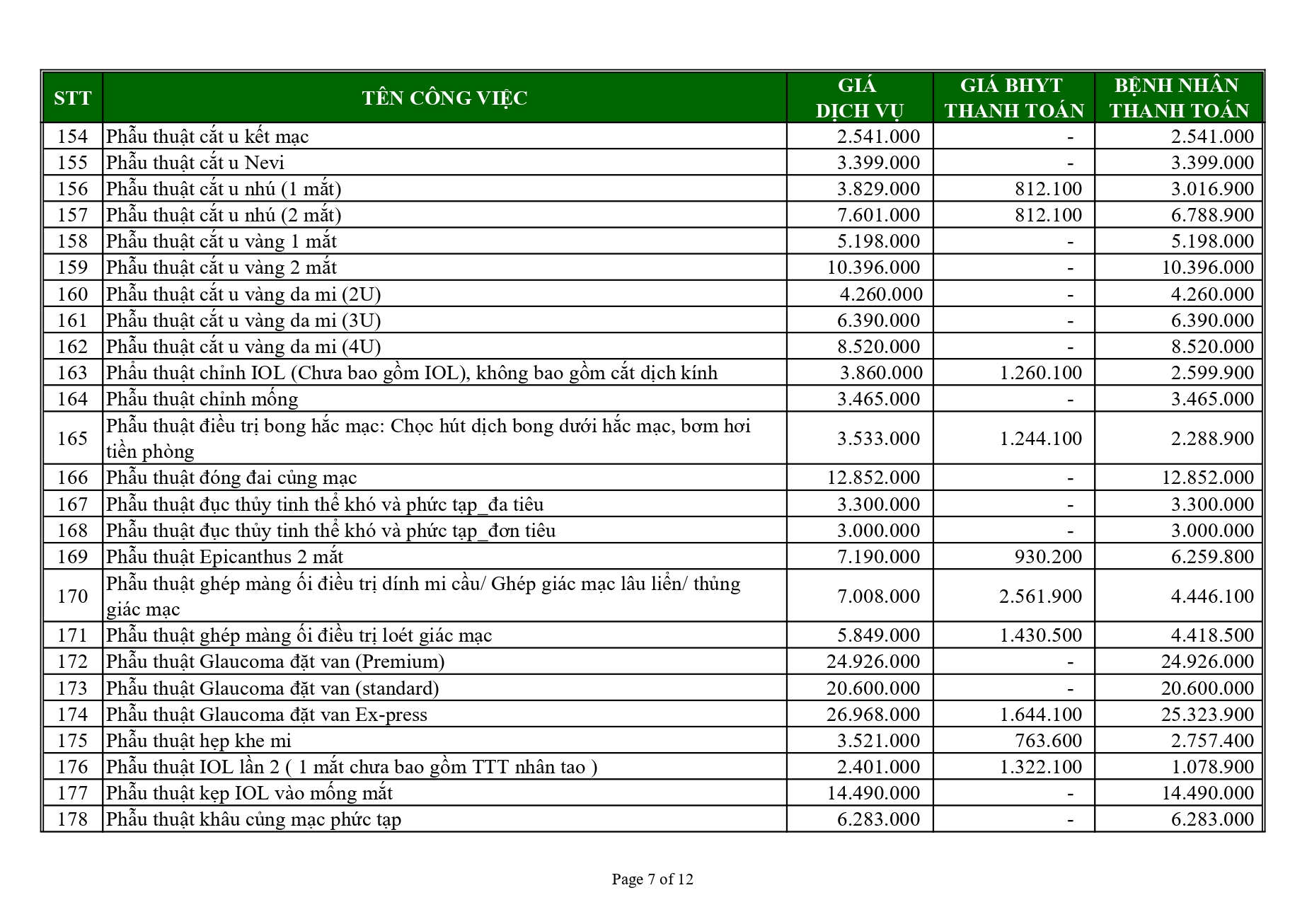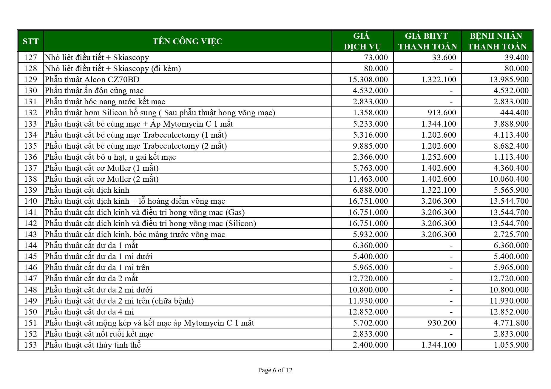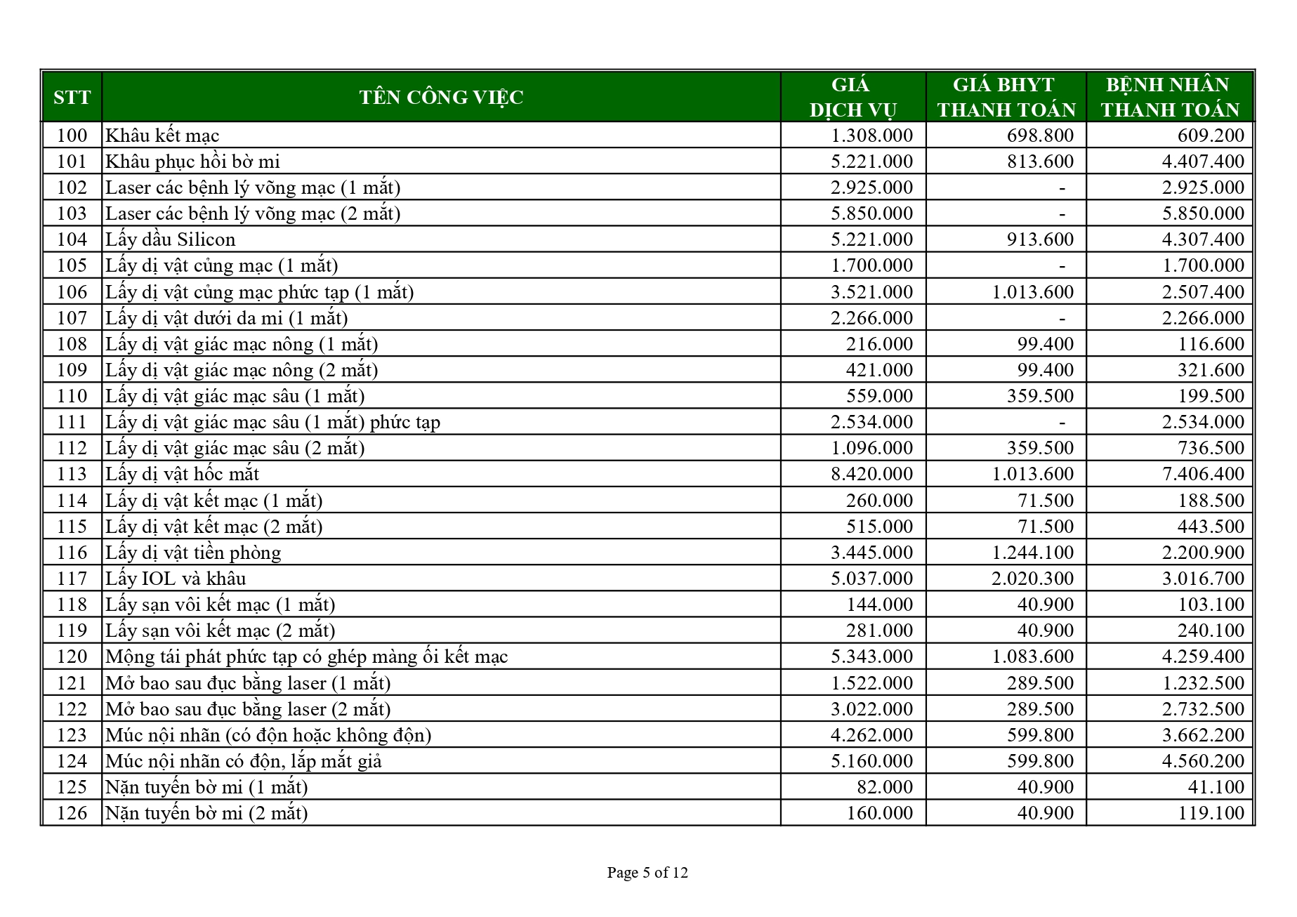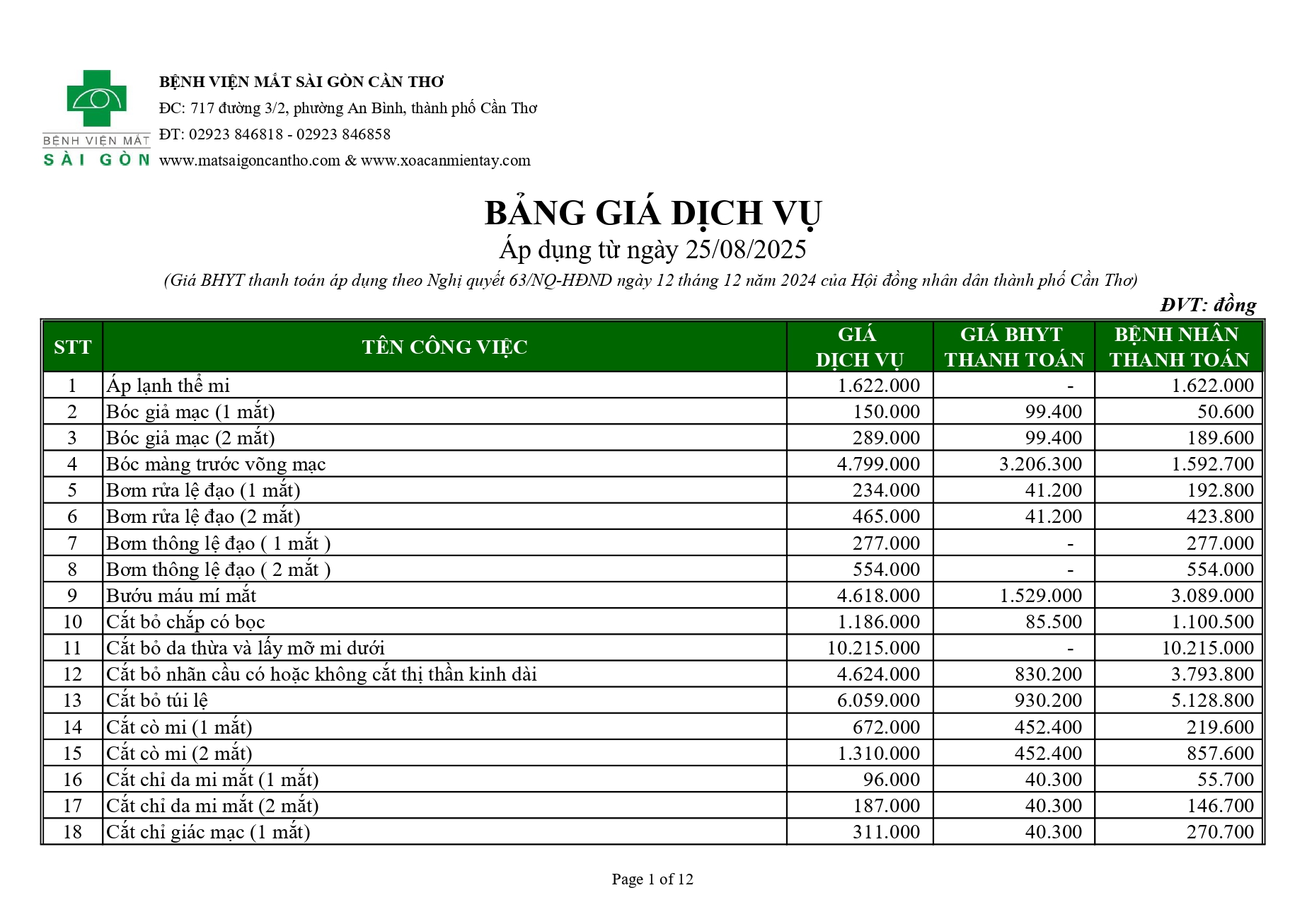 (Giá BHYT thanh toán áp dụng theo Nghị quyết 63/NQ-HĐND ngày 12 tháng 12 năm 2024 của Hội đồng nhân dân thành phố Cần Thơ)